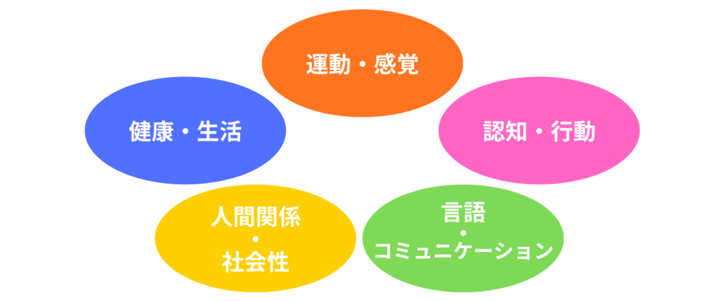 5つの成長の側面を大切に、お子様の個性や段階に合わせて、笑顔で楽しく活動に取り組みます。