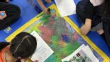 色合わせゲームでは、ペアになって協力しながら活動!